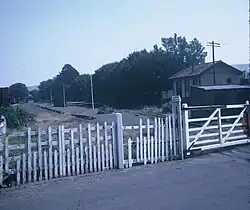 The abandoned Foxdale Line station west of the main site with a solitary "M" series wagon long after its closure; the building remains today and has been a private residence for many years.