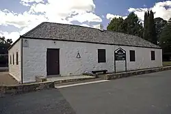 Canberra's first school opened in 1845, the same year that St John's was consecrated.[31] It was sponsored by the Campbells. The schoolroom was surrounded by five other rooms and served as the schoolmaster's residence. The schoolhouse's rubble and bluestone were quarried locally, with a shingle roof and thick walls to shelter against the harsh Canberra climate. The first students arrived in 1845 and it was the only school on the Limestone Plains until 1880 when the first public school was opened.[16] It was built to educate local settlers children,[33] including the Blundell children who lived in nearby Blundell's Cottage, another surviving remnant of Canberra's past.[4]