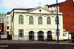 When the New Meeting House became unsuitable for congregation, they started construction on a new place of worship on Broad Street.[4] The New Meeting House was purchased, remodelled and consecrated as a Roman Catholic church in 1862,[5] at the time catering for a large influx of Irish and Italian immigrants who had settled in the area, leading to the church being known as "the Italian church".[6]