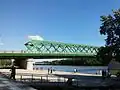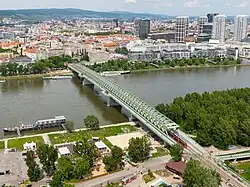 Starý most (English: Old Bridge) is a bridge over the river Danube in Bratislava, Slovakia. Before its reconstruction, the 460-meter-long (1,510 ft) bridge included a wooden pathway for pedestrians, a two-lane road, and a railway track, connecting the historic old city of Bratislava with the newer region Petržalka. The bridge was closed for cars in 2009 and for buses on 14 May 2010. On 2 December 2013 it was also closed for pedestrian and bicycle traffic as deconstruction of the old bridge began. At the time of its closure it was the oldest standing bridge in Bratislava.