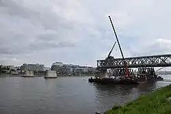 On January 1, 2009 the city of Bratislava closed the bridge to motor vehicles except buses because of problems with statics[2] and on May 15, 2010 also for buses, pedestrians and cyclists.[3] The bridge was reopened to cyclists and pedestrians a few months later after the road for cars was removed and remained open until 08:00 on 2 December 2013 when it was closed for all traffic again due to its deconstruction which started in late November 2013. As of December 2015, the bridge was replaced by a new one for pedestrians, cyclists and trams, as part of new tram track to Petržalka.