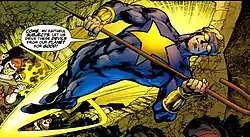 Starman (Prince Gavyn) is a superhero in DC Comics, as one of several heroes called Starman within the DC Universe.[1][2][3][4] Created by writer Paul Levitz and designed by artist Steve Ditko, the character debuted in Adventure Comics #467 in November, 1979 (cover dated January 1980).[5] The character appeared in only 13 stories between 1979 and 1981. In 1986, he was briefly mentioned in the crossover comic Crisis on Infinite Earths as having recently died while trying to protect his native planet. Prince Gavyn's story was expanded in a later Starman comic book series published from 1994 to 2001 that focused on the hero Jack Knight and revisited all DC characters who had used the Starman name. The same series reveals Gavyn's life energy survives in the body of Will Payton, another DC Comics hero called Starman.