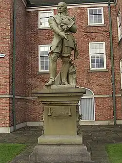 A statue of Oliver Cromwell stands on Bridge Street in Warrington in Cheshire, England. It is a sculpture of Oliver Cromwell, Lord Protector of the Commonwealth of England, Scotland and Ireland. The statue was designed by John Bell and erected in 1899. The statue is one of five public statues of Cromwell in the United Kingdom and has been Grade II listed since September 1973 for its architectural merit.[1]