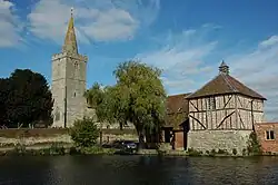 Staunton Court stands immediately to the east of the church and is a picturesque brick and timber building with hipped red-tiled roofs, dating probably from the latter half of the 16th century.[1]