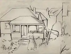 House by Stefan Hirsch, 1920, Graphite on paper, 7+58 x 9+78 inches