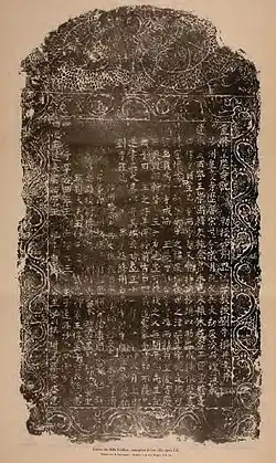 - ^ a b Chavannes, Édouard (1902). Dix Inscriptions Chinoises de L'Asie Centrale (in French). Imprimeries Nationale. pp. 14–16, 96–103.