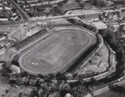 On 25 June 1932 the stadium opened to greyhound racing.[4] The first meeting (a Saturday afternoon) attracting 10,000 spectators witnessing seven races and betting on the new electric tote in one shilling units. The first recorded winner was Rebuke who won the Stenhouse Stakes in 31.80 secs over 525 yards, the 500 yard handicap races on the same afternoon saw slower winners times than the 525 yard events. A second meeting was held on the same evening of the first with another 10,000 spectators witnessing seven more races. The track was 440 yards in circumference and included two covered enclosures and a grandstand. Pony trotting also took place at the stadium on the opening day and would be a popular pastime at the venue.[5]