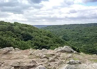 The hill is 97 m (318 ft) high and faces the Baltic Sea.[2] Since the surrounding landscape is relatively flat, it can be seen from a great distance and has traditionally been used as a landmark for seafarers. Many visitors trek up the hill to enjoy the view which is very good in clear weather. The Stenshuvud National Park is traversed by a section of the Skåneleden Trail, between Simrishamn and Kivik. The trail ascends Stenshuvud, offering a diverse range of landscapes and views.[2]