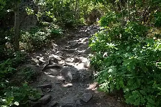 Below the hill there is a popular beach for swimming. Close to the top are the remains of a ruin of a 5th- or 6th-century fortress.[2]