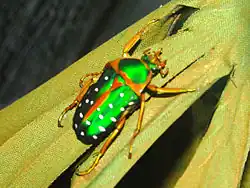 Stephanorrhina guttata, common name spotted flower beetle, is a species of beetles of the family Scarabaeidae, subfamily Cetoniinae and tribe Goliathini.