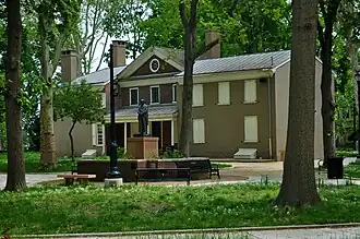 In 1831 Stephen Girard died, leaving most of his immense estate to "the Mayor, Aldermen and Citizens of Philadelphia",[1]: 178 including his country mansion, Gentilhommerie. By the 1920s, urban development had reached the area, but because Girard's will stipulated that the estate could not be sold, the city initially developed the surrounding area as rental houses. In 1951, the City received permission from Orphans Court to sell the 1920s houses and to transfer the park surrounding the mansion to the City's Fairmount Park Commission.[3] 39°55′13″N 75°10′59″W / 39.920339°N 75.183145°W