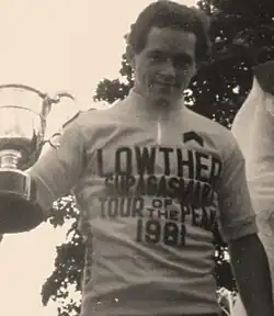 In 1980 he won the Premier Calendar series, whilst riding for the all conquering Manchester Wheelers' Club. However he missed out on selection for the 1980 Moscow Olympic Games. At the end of the 1980 season Joughin decided he would spend the 1981 season living and racing in France[3] However he did not settle and was back within a few months. As he was not prepared to live in a hovel scratching around trying to win races in the hope of being offered a professional contract.[2] Instead he opted to live and race in the UK, now and again beating the big stars when they came over.[2] The following season he again won the Premier Calendar series and competed at the 1982 Commonwealth Games in Brisbane. However the highlight was arguably winning a Stage in the Sealink International after outsprinting Dirk De Wolf, the eventual race winner. He was also third in the British National Road Race Championships, the race was won by Jeff Williams. Joughin then turned professional in 1983, aged 23, with the Moducel team which was based in Staffordshire.[1] In only his second season as a professional he won the British National Road Race Championships in 1984. The race was held on the home soil for Joughin, in the Isle of Man and attracted huge crowds.[2] Joughin was in chasing group which caught the main breakaway within sight of the finish. Joughin launched his sprint with 250 metres to go, went past Malcolm Elliott, and then past Bill Nickson just 50 metres from the line.