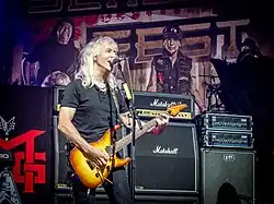 Since 2019, Mann has made regular appearances on guitar/keyboards with The Sweet, following the exit of Tony O'Hora.[23] He has alternated duties with Tom Cory and sometime performs alongside him.[24]
