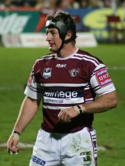 He is well known for wearing headgear during games, having done so throughout his entire career, as well as his loyalty to the Manly-Warringah Sea Eagles.