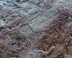 The mine waste from the colliery has been integrated into the dune system and when exposed by wave action the shale waste often contains plant fossils such as species of Equisetum or horsetails.