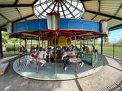 • Carousel - Designed by the Allan Herschell Company and opened in 1952, the Stewart Park Carousel has been in continuous seasonal operation since. The carousel horses were repainted in 1986 by Trumansburg artist Annie Campbell and again in 2014-2015 by Ithaca artists Christi Sobel and Julia John. A new black metal fence was installed in 2016, and an accessible wheelchair ramp and chariot were added in 2018. In 2020, a permanent roof was installed so the carousel will no longer need to be taken down each fall, reducing wear and tear on the ride.