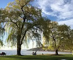Willow trees line the Cayuga Lake shoreline in Stewart Park