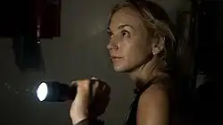 Daryl and Beth have spent the night hiding in an abandoned car, some time after fleeing the prison. After some days of traveling, Beth tells Daryl she wants to take a drink of alcohol, something her father Hershel refused to allow her to do. Daryl doesn't respond, and she storms off on her own, but runs into a group of walkers. Daryl comes to rescue her and takes her back to camp, though Beth later says she could take care of herself. As they travel, they come to a country club. Defending themselves from walkers while working through the corpses in the pro shop and clubhouse, they eventually make it to the bar, where Beth finds a half-filled bottle of peach schnapps. She asks Daryl if it's good and he says "No." While Daryl plays darts with pictures of club members on the wall, Beth considers drinking but begins crying instead. Daryl then takes and smashes the bottle, telling her it is no good and that if she is going to have a first drink, it needs to be something better than that.