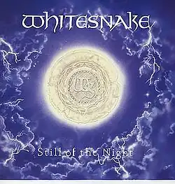 "Still of the Night" is a song by English rock band Whitesnake from their seventh studio album, 1987. It was released on 2 March 1987, by EMI Records and Geffen Records as the album's debut single. The single peaked at number sixteen on the UK Singles Chart, number seventy-nine on the US Billboard Hot 100 and number eighteen on the Mainstream Rock chart. The song, described as the group's epitome of the hair metal era, is known for its heavy riffs, and dynamic structure. Still of the Night has since become one of the band's signature songs.
