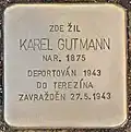 Glauber, KarelKarel Glauber, also Karl, was born on 14 June 1937 in Horažďovice. His parents were Valtr Glauber and Gertruda née Zinner (see below). On 26 November 1942, the boy was deported from Klatovy to Theresienstadt concentration camp by transport Cd. His transport number was 124 of 651. His mother was deported to Auschwitz concentration camp and murdered there on 16 January 1943. The little boy was deported on 18 December 1943 to Auschwitz by transport Ds. His transport number was 2219 of 2,503. There the Nazis took the life of the six years old boy.[11][12]