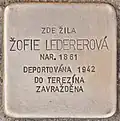 Ledererová, ŽofieŽofie Ledererová, also called Reisl, was born on 21 June 1861 in Beuthen, Germany. Her parents were Herman and Julie (last and maidens name not known). She was a housewife and married to Vojtěch Lederer. On 26 November 1942, she, her husband and her sister-in-law were deported from Klatovy to Theresienstadt concentration camp by transport Cd. Her transport number was 139 of 651. She lost her life in Theresienstadt on 2 February 1943.[33][34]