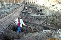 Klaus-Michael Körner, an SPD representative in the Landtag of Mecklenburg-Vorpommern, accused the former head of the state office for heritage management, Friedrich Lüth, of responsibility for the destruction of the artefacts.[6] Lüth denied these accusations and declared that he had first been notified of the boats' destruction on 11 March 2009.[7] In fact, Lüth had written to the stte ministry of culture on 5 June 2002, "finally, I must remind you of the urgency of the situation. The dugouts are beginning to decay!" and on 16 July 2002, "The sensational finds... are generally in a dire state. If no thing is done soon, it will no longer be possible to conserve these finds."[8] In March 2009, Lüth stated that all appropriate measures had been taken for the preservation of the boats immediately after their discovery in 2002. He further stated that the dugouts had not already dried out in 2004, stating that "until 2005, they were regularly sprayed."[9] However, he stated that after the partial collapse of the building, the finds had "probably been forgotten." He also stated in an interview on NDR 1 Radio MV that the boats were not completely lost, "the small fragments of the dugouts are not at all unsalvageably lost. It is just that they are no longer preserved in a moist condition." He claimed that they were evenly dried and thus remained in a stable condition.