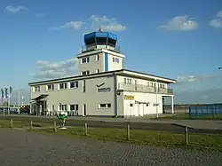The town has also a small aerodrome ("Flugplatz Strausberg", ICAO: EDAY),[8] opened in 1927, with a runway of 1,200 m × 28 m, and situated 2 kilometres in the east of town centre.