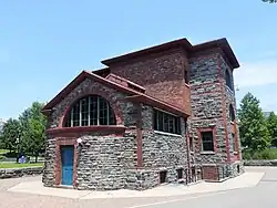 Strecker Memorial Laboratory is a historic building at Southpoint Park on Roosevelt Island in New York City. Built in 1892 to serve as a laboratory for City Hospital, it was "the first institution in the nation for pathological and bacteriological research". The project was funded by the Strecker family.[3] The building was designed by architects Frederick Clarke Withers and Walter Dickson in the Romanesque Revival style with large arched windows to provide plenty of natural lighting and ventilation. On the first floor were an autopsy room and an office, while the floor above housed laboratories where specimens were examined. The cellar was used as a mortuary and for storage. Administrative support was provided by the nearby City Hospital. An additional storey was later built, providing room for the examination of histological samples, a scientific library and a pathology museum.[4][3][5]