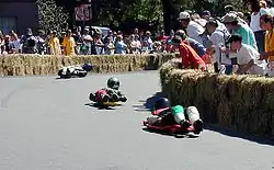 Roger Hickey and Don Baumea from the Signal Hill races kept the sport alive by continuing to hold races in Southern California. Around the early 1990s, both underground and professional races continued to be held in Southern California by such organizations as the Underground Racers Association (URA), Federation of International Gravity Racing (FIGR) and Road Racers Association for International Luge (RAIL). Race organizers in the 1980s and 1990s started implementing many more equipment, safety and race regulations.[5]