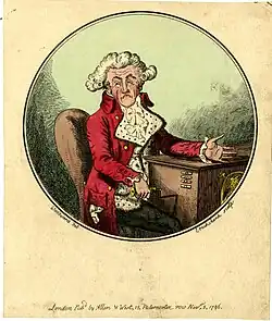 A grinder of music (1796), a hand-tinted etching by Isaac Cruikshank