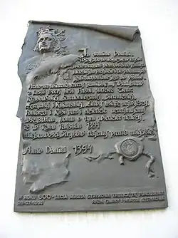 The first mention of Stryków was in 1387. Stryków was a village situated on the route from Zgierz to Łowicz. Stryków received town rights in 1394 from King Władysław II Jagiełło, at the request of the heir of the town founder, Deresław Strykowski. It was a private town, administratively located in the Brzeziny County in the Łęczyca Voivodeship in the Greater Poland Province of the Kingdom of Poland.[3] In the middle of the eighteenth century, the town had 45 artisans (13 clothiers, 5 merchants and shopkeepers, and 5 others) and was a local center of commerce and crafts. It was also a center of aristocratic wealth.
