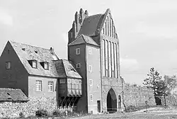 - the medieval town walls with the Gothic Mill Gate (Brama Młyńska) and Prison Tower (Baszta Więzienna)