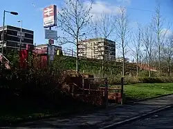 The original Summerston station (closed in 1951)[1] was located about 1+1⁄2 miles (2.5 km) to the north of the present station on the defunct and dismantled Kelvin Valley Railway line between Maryhill and Kilsyth; the current one is one of five built for the Maryhill Line project by British Rail in 1993.