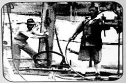 In November, Sun went to Nanjing at the invitation of Weng Wenhao and served as commissioner and director of mining chamber in the newly established National Defense Planning Commission. In March 1933, he investigated and published a report on the coal resources along Jinpu Railway.[20] In September of the same year, Sun was sent to Shaanxi to inspect for oil along with Yan Shuang. In the spring of 1934, after learning of the existence of oil resource in Northern Shaanxi, the National Defense Planning Commission established Northern Shaanxi Oilfield Exploration Division (Chinese: 陕北油矿勘探处), with Sun as the director. In Yanchang County, Sun assembled China's first oil drilling team and directed the team's operations in constructing oil derricks and refining gasoline.[2][21]