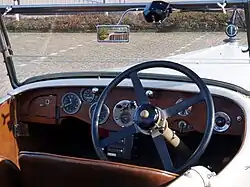 The Sunbeam's engine was of 2,920 cc, distributed between six cylinders.[2] It featured inclined valves operated via easily adjustable tappet levers by two overhead camshafts, an important innovation at the time.[2] The detailed design of the engine followed many of the principles of the engines which were gathering plaudits for the company on European racing circuits.[2] The cylinder head and block were formed from a single casting which was then considered normal for high-performance engines.[2] One of the novel features of the engine was its use of dry-sump lubrication whereby engine oil was drawn from a tank positioned beside the engine.[2] In 1929 a supercharger was added, increasing the power output to 135bhp.[4]