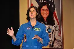 Williams was born in Euclid, Ohio, but considers Needham, Massachusetts, to be her hometown.[1] Her father, Deepak Pandya, was an Indian-American neuroanatomist from Mehsana district, Gujarat, while her mother, Ursuline Bonnie Pandya (née Zalokar) was a Slovene American. Her parents resided in Falmouth, Massachusetts. She is the youngest of three children. Her brother, Jay Thomas, is four years older and her sister, Dina Annad, is three years older. Williams' paternal family is from Jhulasan in India[2] whereas her maternal family is of Slovene descent.[3] Williams has taken the Slovenian flag,[4] a samosa and Carniolan sausage to space in celebration of her Indian and Slovenian heritage.[5] Her nicknames are Suni in the United States[1] and Sončka in Slovenia.[6]