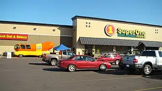 ![]() A typical Super One store is visited by the Oscar Mayer Wienermobile. | |