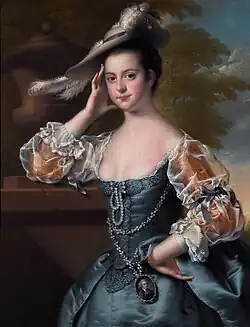 Hope was born in Derby in 1768. Her father, Charles Hope, was the rector of All Saints church in Derby.[1] She was painted by a family friend Joseph Wright of Derby not in contemporary dress but in a 17th-century costume.[2] This painting is extant and was sold at Christie's in 2009.