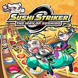 Sushi Striker: The Way of Sushido[a] is an action-puzzle video game developed by indieszero and published by Nintendo.[1] The game was released worldwide for the Nintendo 3DS and Nintendo Switch on June 8, 2018.[2] Sushi Striker takes place in a world where sushi has been made forbidden by its ruling empire. The protagonist, Musashi, attempts to revert this ban on sushi. The game consists of one-on-one battles with CPU-controlled opponents, where the player must match sushi plates of the same color on a series of conveyor belts to cause damage to the opponent.