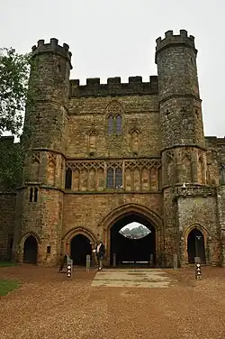 Battle Abbey and Lewes Priory were amongst England's most important monasteries in the High Middle Ages.[56] The Cistercian abbey at Robertsbridge was the third of Sussex's 'great monasteries'.[57] 1094 saw the completion of the Benedictine Battle Abbey, which had been founded by a team of monks from Marmoutier Abbey on the River Loire. The abbey was built on the site of the Battle of Hastings after Pope Alexander II had ordered the Normans to do penance for killing so many people during their conquest of England. Monks also planned out the nearby town of Battle shortly after the conquest. Around 1081, the lord of Lewes Rape, William de Warenne and his wife Gundrada formed England's first and largest Cluniac monastery at Lewes Priory. The Priory of St Pancras was the first Cluniac house in England and had one of the largest monastic churches in the country. It was set within an extensive walled and gated precinct laid out in a commanding location fronting the tidal shore-line at the head of the Ouse valley to the south of Lewes. The monks at Lewes also administered monastic cells at Etoutteville as well as the abbey of Mortemer in Normandy.[58]