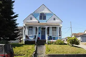 The 1+1⁄2-story wood-frame cottage fronts on Pine St. Designed by Everett architect Frederick A. Sexton, it combines elements of the Stick–Eastlake and Shingle architectural styles. Sexton came to the Everett town site in 1891 and became essentially the architect for the eastern side of town. He went on build the first brick building in town.[2]