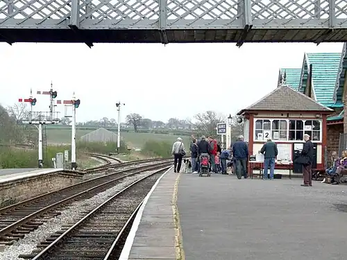 On platforms 1 and 2, the ex-Midland station building from Syston railway station in Leicestershire has been rebuilt. In addition, there is an island platform with Platform Nos 3 and 4. The building here is a replica of that at Broom Junction railway station.