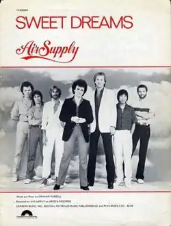 "Sweet Dreams" is a song by English/Australian soft rock duo Air Supply from their sixth album, The One That You Love. The song reached No. 5 on the Billboard Hot 100 and No. 4 on the Adult Contemporary chart in early 1982.[1][2] [3] The song also reached No. 8 on Cash Box. In Canada, it peaked at No. 14 on the RPM Top 100 and No. 15 on the Adult Contemporary chart.