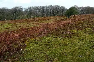It is also the site of a deserted medieval settlement, which has been designated as a scheduled monument.[7][8] It has been added to the Heritage at Risk Register because of the vulnerability to plant growth.[9]