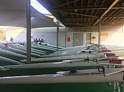 The Sydney International Regatta Centre contains outdoor and undercover exhibition spaces, multiple conference rooms and a spectator grandstand, architecturally designed by Woods Bagot which seats 1000 spectators undercover.[4]