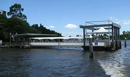 The wharf was destroyed during the January 2011 Brisbane floods.[4] A temporary replacement opened on 18 April 2011.[5]
