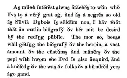 Sample text of C.W. Larison's orthography in Silvia Dubois : a biografy of the slav who whipt her mistres and gand her fredom