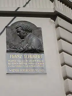 Franz Schubert Memorial in Vienna. Schubert lived here in 1822–23 with his friend Franz von Schober and wrote the Unfinished Symphony.
