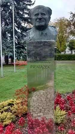 He was married to Janina Praska, born on August 28, 1914, in Warsaw, professor of plant physiology (marriage: September 1, 1939 in Ithaca). He had two children (a daughter, Emilia, born in 1942, and a son, Norman, born in 1946).[1] He died on July 1, 2008, in Konstancin-Jeziorna. He was buried at the Bródno Cemetery in Warsaw (avenue 49A, row 1, grave 25). The memory of Professor Pieniążek was commemorated with three monuments: a monument-bench in front of the town hall building in Skierniewice, a bust in front of the building of the Institute of Horticulture in Skierniewice, and a stone obelisk in the market square in Błędów in the Grójec county, funded by local fruit growers.