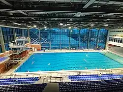 The indoor swimming pool was opened on 13 December 1968.[4] The pool's dimensions are 50 × 20 m. The capacity for spectators is 2,000 seats.[4] Within the same building there is a recreation center, a gym, a small swimming pool and a hotel named Taš.